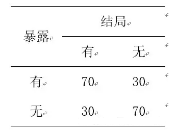 我们计算RR=[70/(70+30)]/[30/(30+70)]=2.3;