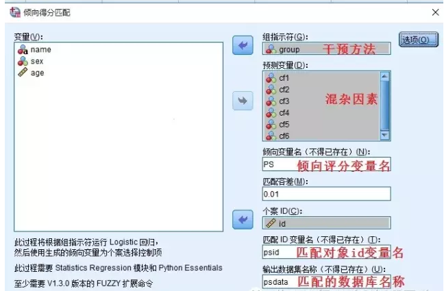 在用SPSS做倾向评分匹配时应注意: