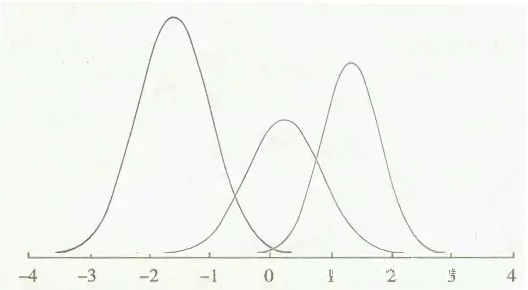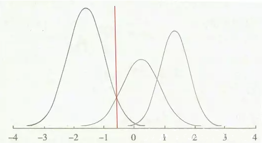 但如果我们的待区分状态有三个的时候,似乎就变的比较复杂了,让我们先来看看带筛检患者的分布会变成什么样子: