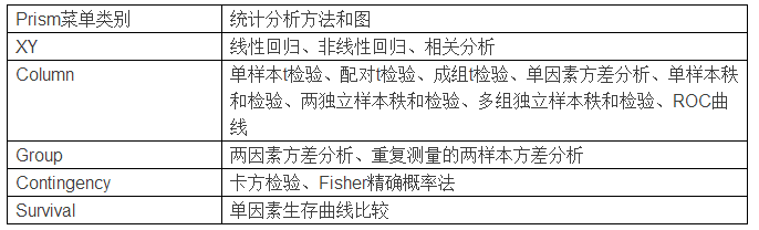 那么Prism都能做什么图呢?下面这个表让你一览究竟。