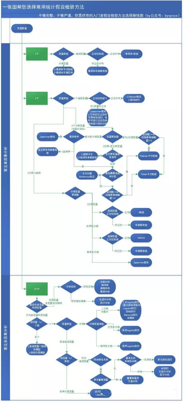 今天,我们只看图。一张图帮您选择常用统计假设检验方法。