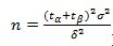 上述公式中delta为允许误差,sigma为标准差,且是单侧检验,如果是双侧检验把talpha换成talpha/2即可。
