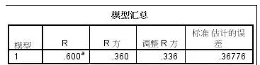 上表是判断方程模型是否成立的方差检验,在这里,它的P值与自变量系数检验的P值相等,在多重线性回归里,只要有一个自变量对因变量的影响有统计学意义,此检验的P值都会小于0.05,也即如果此检验P值不小于0.05,可认为所有自变量与因变量都没有线性关系。