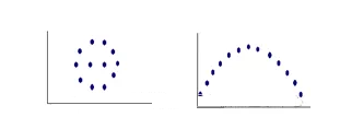 如下图可以认为两者有线性关系。如果如下图数据如果直接做回归分析,可能都没有线性关系(r=0),但观察散点图,左侧认为没有线性关系,右侧有曲线关系(抛物线)。因此散点图在相关及回归分析中至关重要。
