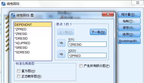 正态:回归分析对自变量及因变量的分布均没有要求,因此正态不是指因变量或自变量正态,而是指回归之后的残差正态,具体检验方法:在回归对话框里点击“保存”按钮,如下图选择未标准差残差: